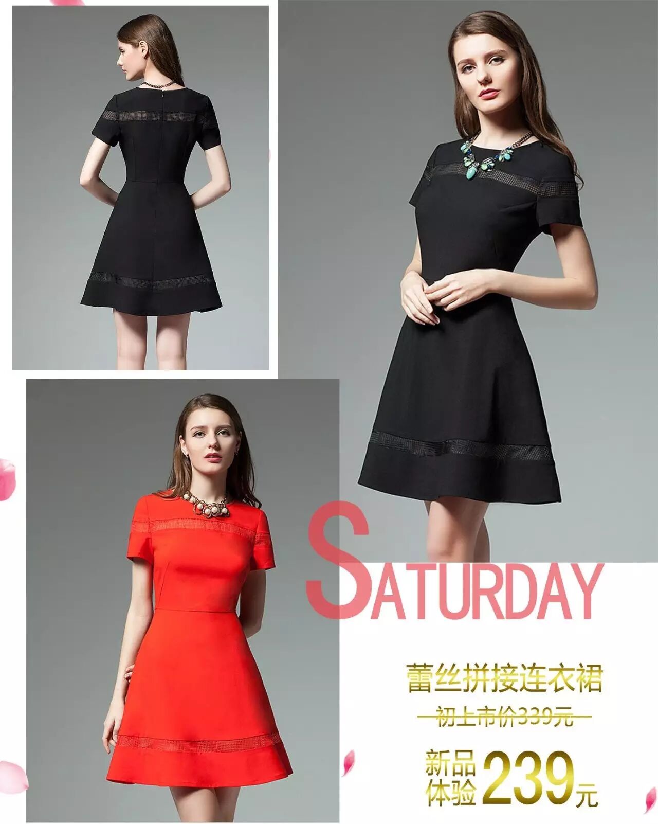 周末逛街选条经典连衣裙,收腰设计show出最美线条,前胸和裙摆点缀精致网格蕾丝拼条,女人的小性感若隐若现。简练、优雅、迷人,令人过目不忘!