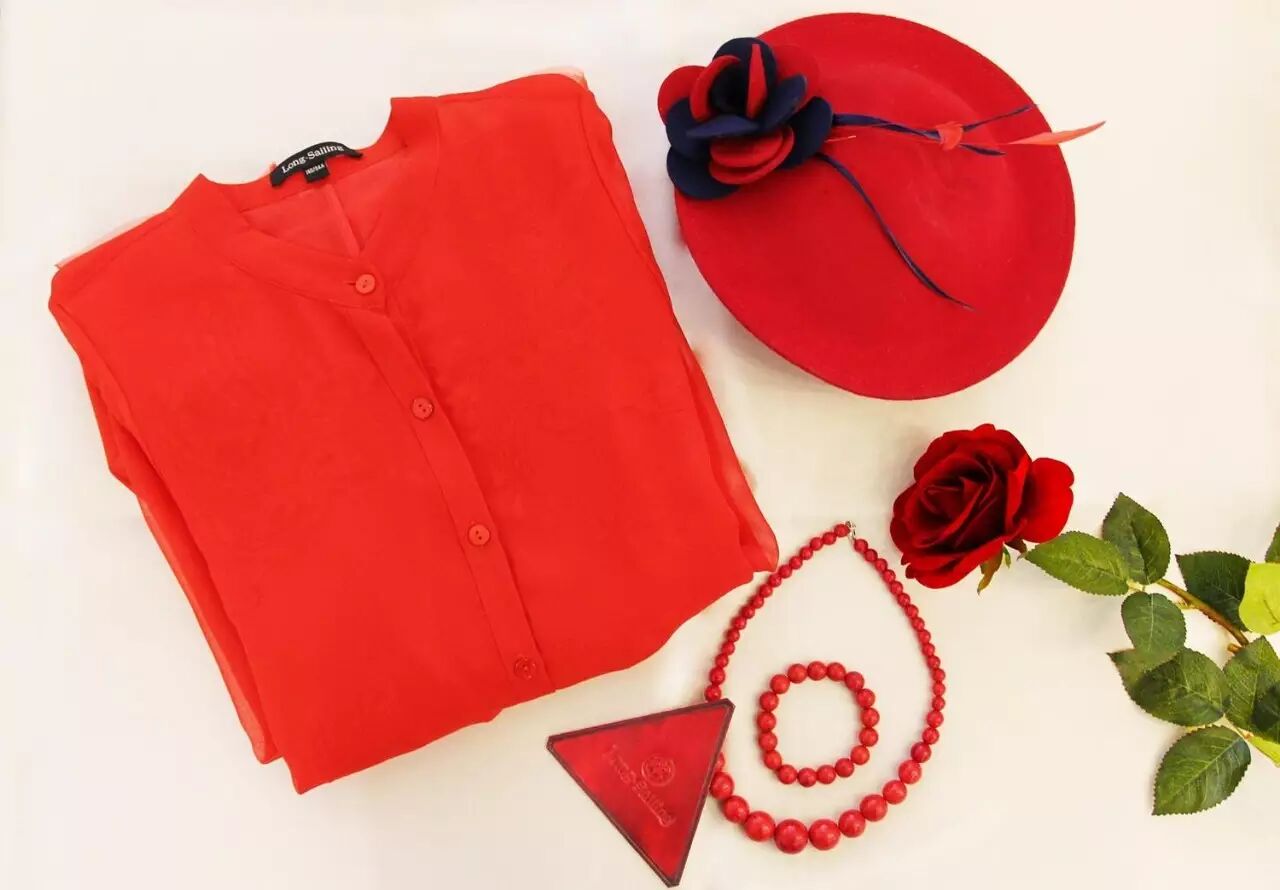 红色,可以是一支玫瑰, 一袭纱衣,一个手包,一串珊瑚… 也可以是一顶小红帽,闪耀一身